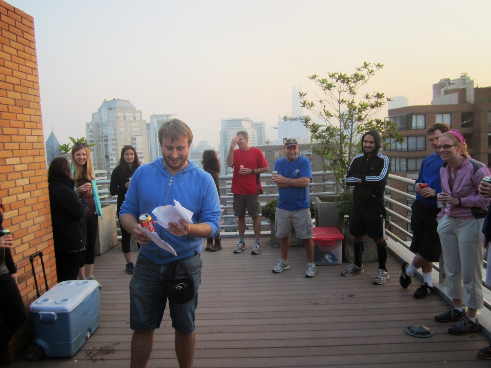 It was Acting Semen's 50th Hash, which means that he joins the Order of the Purple Pukus. We poured a beer on his head. It was awesome.
