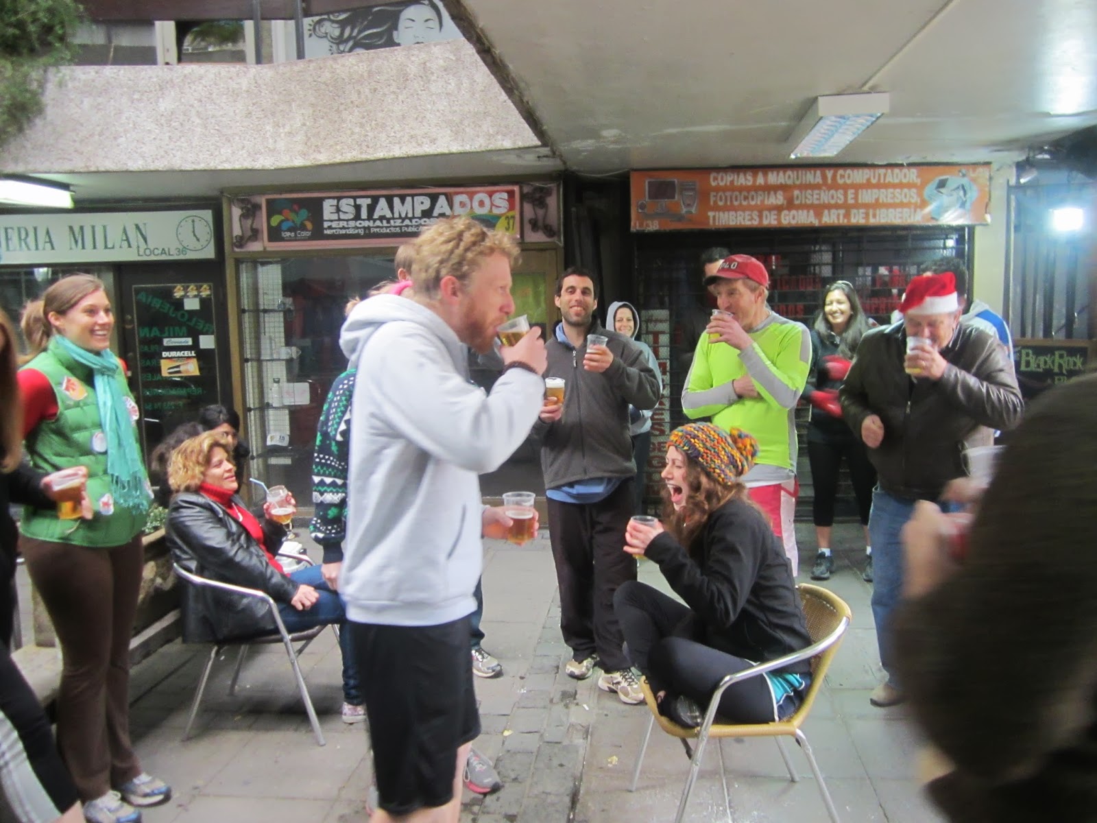 The trail brought us to a beer stop (yay!), which was actually a delicious-holiday-jello-shot stop.
