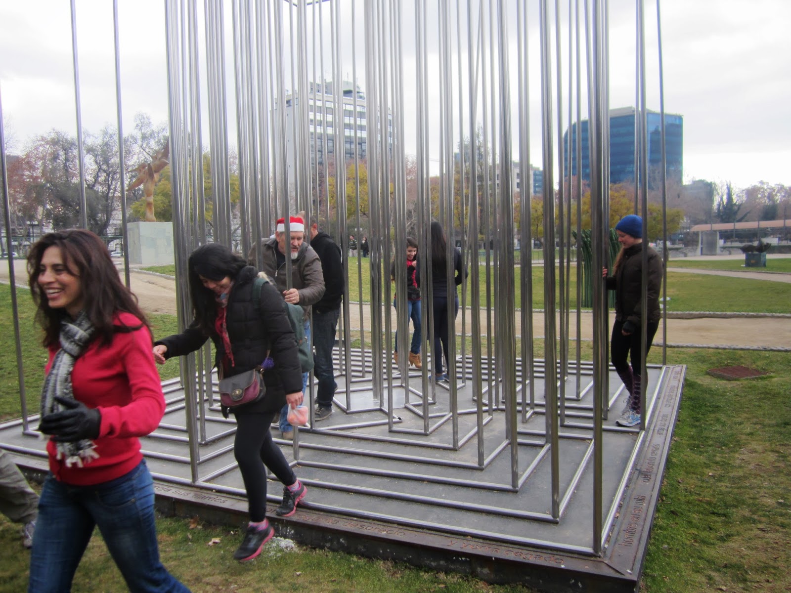 Then the run! Hares Octopussy, Quarter Bouncer and French Polisher led the group on a trail north of the Mapocho and...through the sculpture park.